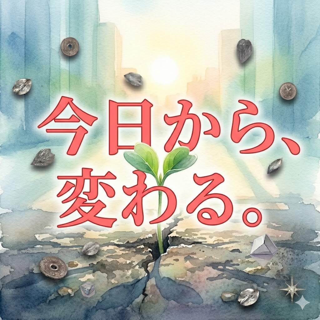ALT: 朝の光を浴びて芽吹く植物、新しい一日の希望と安らぎ